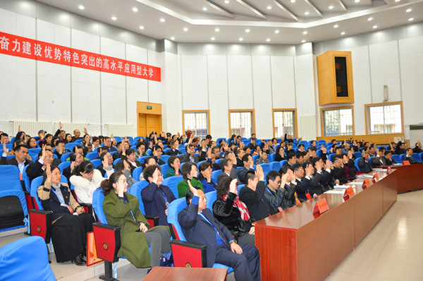 大會執行主席孫文亮、馮濱魯、王清明、丁子信、馬茜華、朱猷武、趙光強、王旭升在主席臺前排就座。校長馮濱魯向大會作了工作報告,黨委書記孫文亮作了重要講話。黨委副書記王清明主持大會。