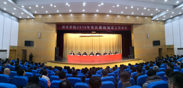 本網訊 4月4日,學校召開2019年黨風廉政建設工作會議,會議深入學習貫徹習近平新時代中國特色社會主義思想,全面落實黨的十九大精神,認真貫徹十九屆中央紀委三次全會、省紀委十一屆四次全會和全國教育系統全面從嚴治黨工作會議等會議精神,回顧2018年學校黨風廉政建設工作,總結改革開放四十年來紀檢監察工作的體會和認識,安排2019年黨風廉政建設工作任務。