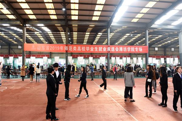本網訊 4月14日,山東省2019年師范類高校畢業生就業雙選會濰坊學院專場在我校成功舉行。12000余名省內高校畢業生通過現場參會或登錄網絡平臺參加了招聘活動。山東省教育廳學生處處長李霞、副處長周憲峰、濰坊市教育局副局長于允鋒、濰坊市大中專畢業生就業指導中心主任王術平到雙選會現場檢查指導,副校長丁子信陪同。