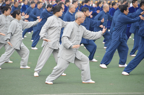 各代表隊在入場時進行了方陣表演。北海國際學院代表隊,他們臉上笑容洋溢,腳下步履從容,他們用嘹亮的聲音喊出了隊伍口號。文學與新聞傳播學院代表隊再次延續了去年紅白相間服飾的搭配,紅色服飾為菱形,白色服飾環繞在四周,她們用柔美而又富于變換的古典舞與當代戲劇相結合,展現了傳統文化的獨特魅力與價值。經管學院代表隊一出場就引起全場沸騰,激昂的鼓聲、迅捷有力的動作、富有專業特點的算盤都彰顯了經管學子經世濟民的滿腔熱血。體育學院代表隊身著白衣白帽,英姿颯爽、斗志昂揚,展現了他們勇攀高峰、不懼艱險的斗志。教師教育學院代表隊的方陣中呈現出“教育”一詞的英文縮寫———“EDU”,表達了教師教育學院師范生們的學者風度、師范氣質以及“黑發積霜織日月,粉筆無言寫春秋”的追求。800多名教職工進行的二十四式太極拳表演,以紅、白、藍為基調的方陣一招一式間都飄逸著仙氣,他們時而出掌、弓腿,時而身體后傾、立掌,柔韌而不失剛勁,展現了我院教職工精神抖擻的面貌。