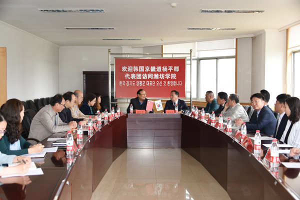 馮濱魯對鄭東均一行的到訪表示熱烈歡迎,并介紹了學校的發展概況及與韓國高校合作交流情況。鄭東均介紹了楊平郡的發展概況及在促進中韓交流方面所做的工作。雙方就進一步推進中韓高校間的教育交流與合作進行了洽談。