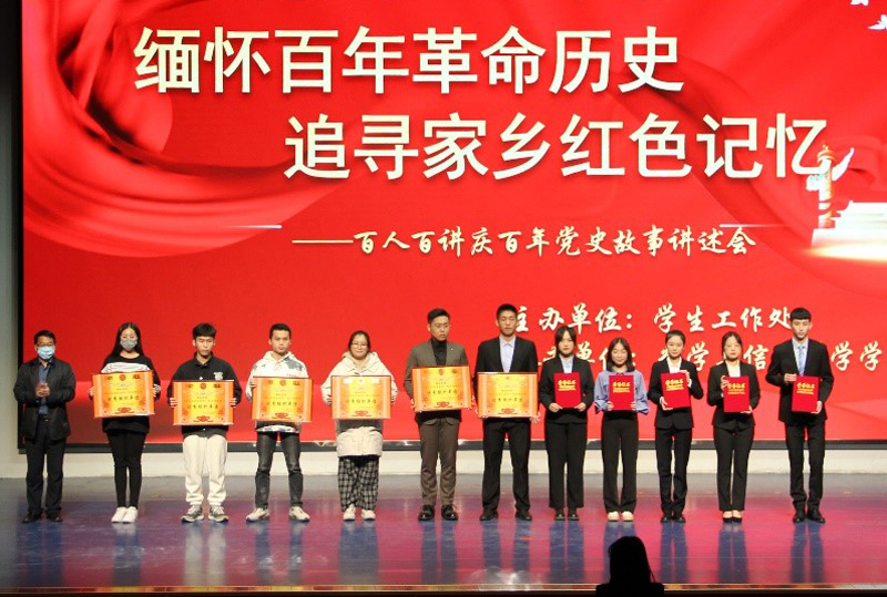 本次黨史講述會以“緬懷百年革命歷史,追尋家鄉紅色記憶”為主題,以革命遺跡、革命文物、革命英雄事跡為切入點,通過讓大學生深入挖掘并講述家鄉紅色黨史故事來追溯革命歷史,展現中國共產黨波瀾壯闊的百年征程。經過前期初賽選拔,最終來自12個學院的15名同學進入本次活動決賽。參賽者們通過動情的講述,將紅色黨史故事鮮活生動、真實感人地呈現出來。從“小蘿卜頭”宋振中到抗美援朝老戰士,從“爆炸英雄”李混子到革命烈士陳龍飛,還原了一個個鮮為人知的英雄故事,重現了一件件可歌可泣的人物事跡;從《共產黨宣言》中文譯本到一封絕筆家書,從一個日記本到一塊降落傘布,從一張紙條到一幅畫像,一件件普通的革命文物背后蘊含著感人至深的革命故事,承載著黨和人民英勇奮斗的光榮歷史。經過評委現場評分,文學與新聞傳播學院任佳禾同學的《放飛蝴蝶的男孩——小蘿卜頭》與數學與信息科學學院崔嘉同學的《憶最可愛的人——我的爺爺崔有同志的故事》榮獲本次比賽的一等獎。
