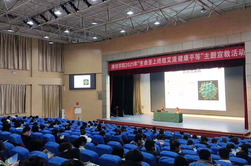 12月2日,校醫院指導大學生紅十字協會舉辦了以“生命至上、終結艾滋、健康平等”為主題的知識講座。張棟醫師圍繞艾滋病的基本知識、傳播途徑和防控措施以及艾滋病相關的國家政策進行了講解。現場近300名大學生骨干聆聽了講座。