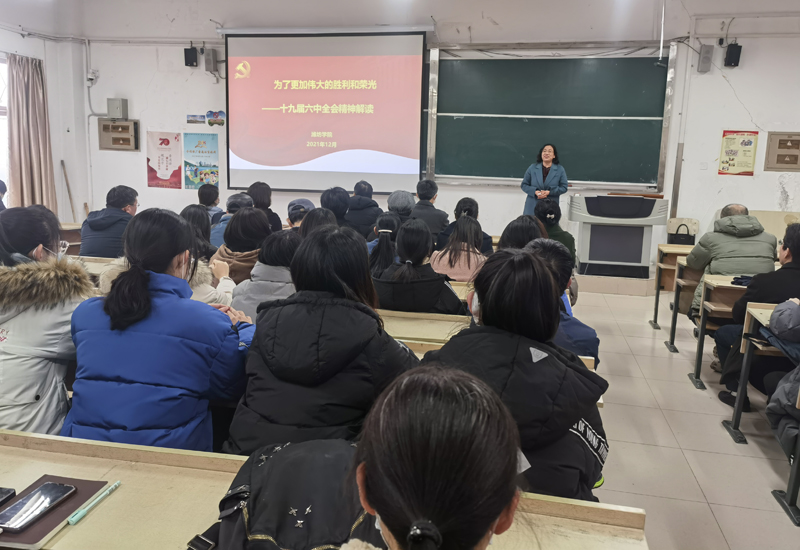 本網訊 12月16日下午,機電與車輛工程學院和經濟管理學院在6401教室,共同舉行學習貫徹黨的十九屆六中全會精神專題報告會,馬克思主義學院楚愛麗副教授以《為了更加偉大的勝利和榮光》為題,給大家解讀了黨的十九屆六中全會精神。兩個學院全體師生黨員參加會議。
