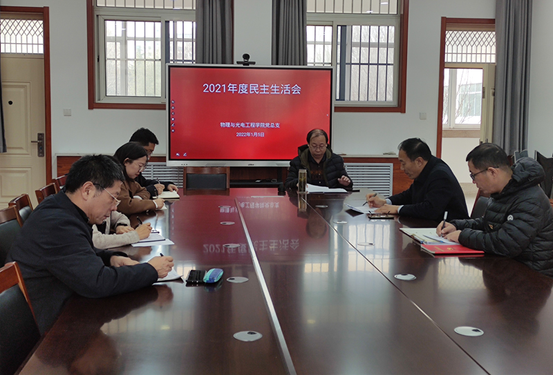 本網訊 根據學校《關于認真開好2021年度處級黨員領導干部民主生活會的通知》要求,物理與光電工程學院黨總支于1月5日上午在明正樓召開處級黨員領導干部民主生活會。學院領導班子成員、黨總支委員參加會議,學院黨總支副書記、院長李英德主持,學校紀委有關同志列席會議。