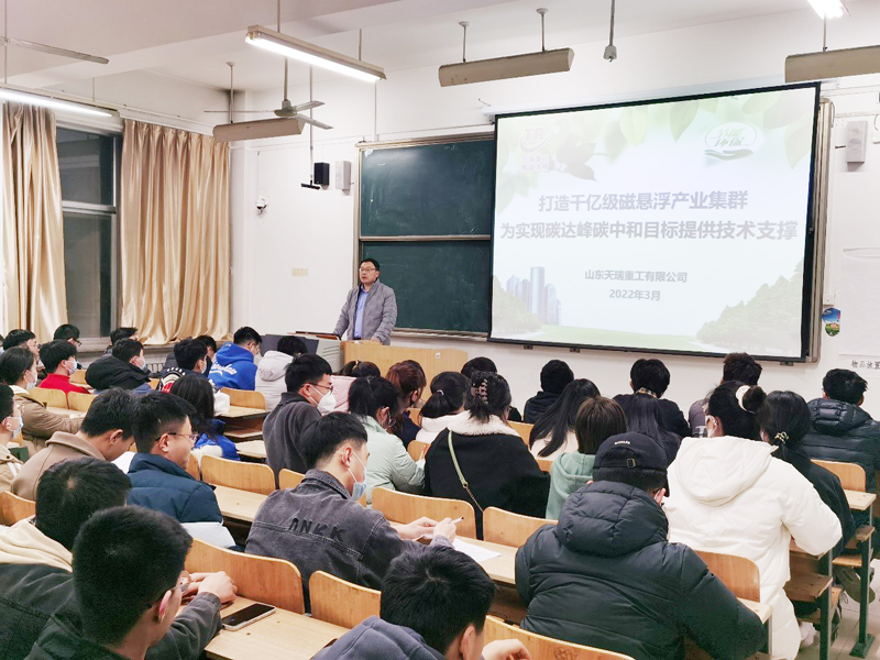 會上,李鵬從企業概況、產業詳情、政府支持、發展規劃、企業實景和招聘匯總等方面進行了全面系統地介紹。在互動環節,李鵬就同學們提出的發展平臺與機會、專業對口、工作環境、實習待遇等疑問,進行耐心細致、嚴謹客觀地解答,并分析了當前大學生所面臨的就業壓力及就業前景,為同學們下一步的實習和就業奠定了堅實的基礎。天瑞磁懸浮產業學院院長宋廣景表示,下一步,該院將繼續探索和深化與山東天瑞重工有限公司合作模式,不斷提升人才培養質量,為高水平應用型大學建設凝聚力量。
