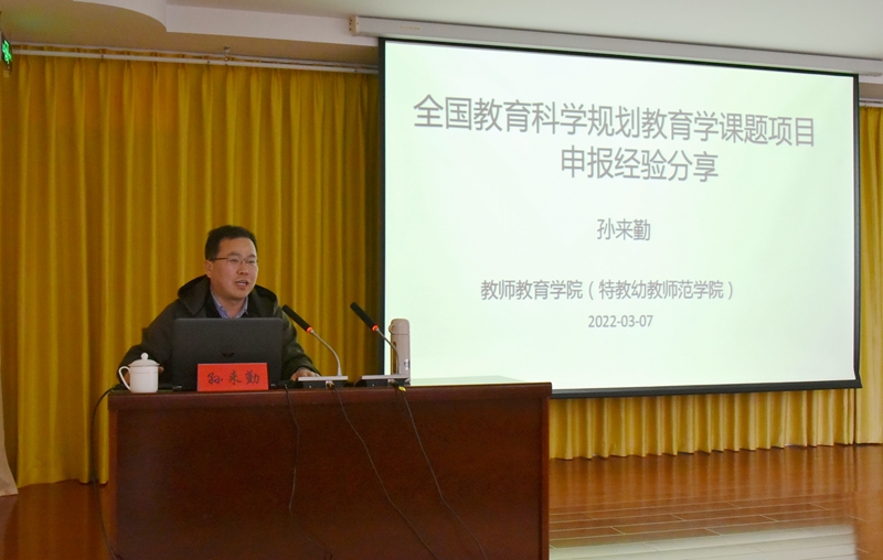 本網訊 3月7日,學校舉辦2022年全國教育科學規劃課題專家報告會,我校教師教育學院孫來勤副教授作專題輔導報告。