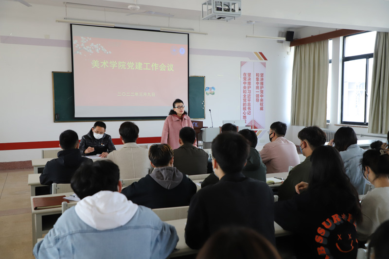 本網訊 3月9日下午,美術學院黨總支召開全體黨員大會。會議由黨總支書記劉雪梅主持,黨總支委員、各黨支部書記和全體師生黨員參加了會議。