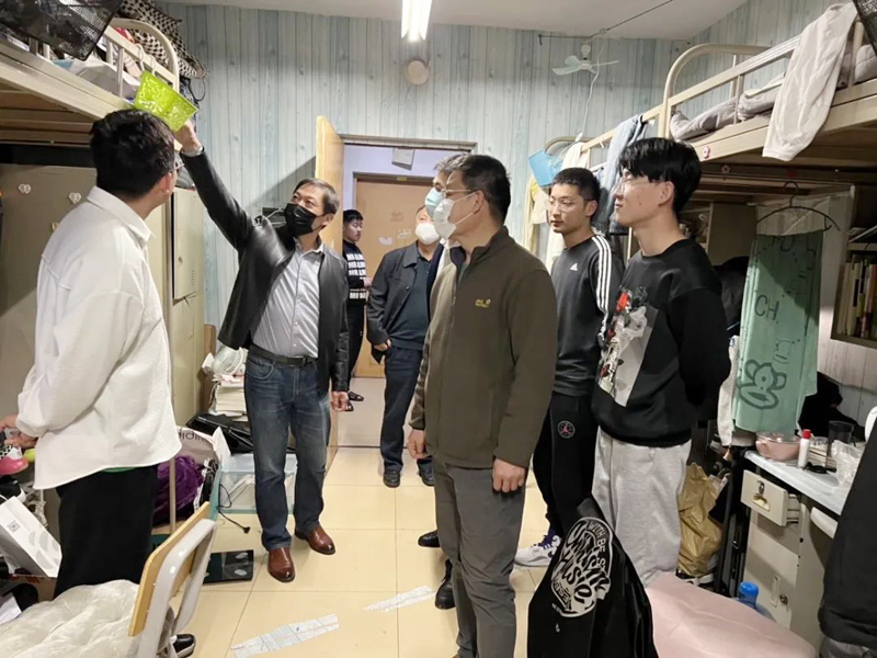 在走訪過程中,王元森、臺夕市和同學們親切交流,詢問他們在學習及生活上遇到的困難,叮囑大家在特殊時期要提高疫情防控意識,嚴格遵守學校疫情防控要求,做好每日宿舍開窗通風、衛生清潔工作,加強體育鍛煉,提高身體素質。王元森說,10號公寓位于校外,活動范圍比較小,用餐也多有不便,需要克服更多的困難,同學們要服從防疫大局,筑牢疫情防控防線,這也是作為師哥師姐為學弟學妹們做出的榜樣。