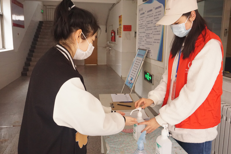 作為人員聚集地之一,在此關鍵時期,如何疏散超市的人員顯得尤為重要。志愿者采取了維持流量的方案進行管理,全程超市內的購物人員不超過十人,并且設置“超市候場區”,安排志愿者進行安撫和監督。“校園安全穩定巡查小組”還在學生公寓、洗浴中心、洗衣房、開水房、操場等場所進行巡查,提醒同學們佩戴口罩,洗衣服、接水都要間隔一米進行排隊。