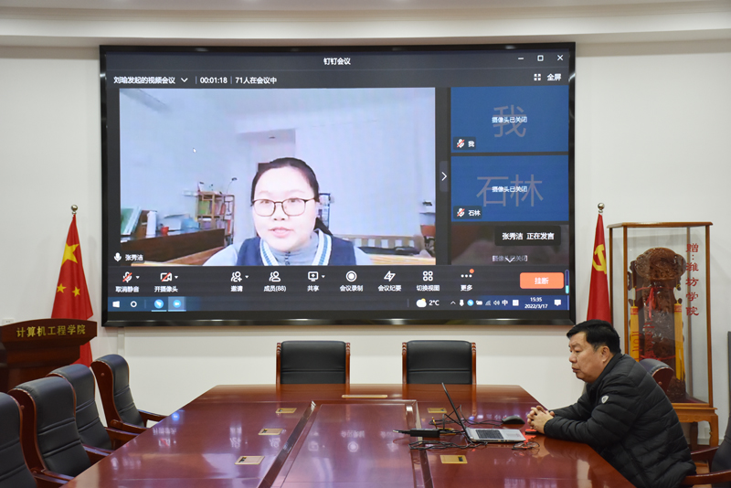 本網訊 3月17日下午3點,計算機工程學院一場確定已久的考研輔導會議以釘釘視頻會議的形式開啟,10余名博士教師,70余名備考的大四學生共同參加,該院黨總支書記張曉靜、院長王成端旁聽。