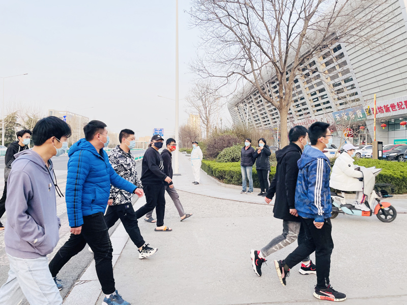 該院十分注意校內公共區域的疫情防控。在校外10號公寓住宿學生的就餐問題是老師們非常掛念的。3月15日,張曉靜、任秀潔與輔導員老師們主動到學校小北門與9號、10號公寓路口處執勤督導,督促同學們“兩點一線”進出校園,守護同學們安全往返。