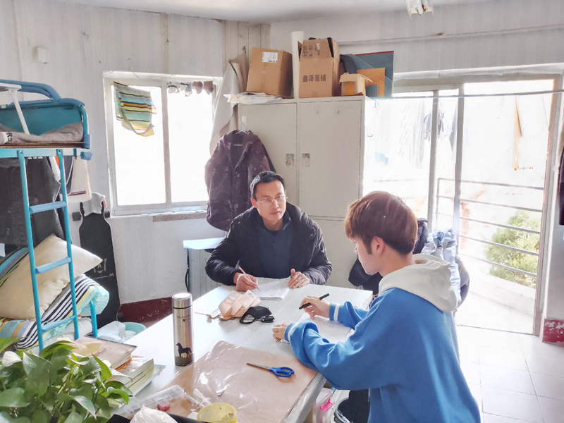 3月14日,面對新冠肺炎疫情防控的嚴峻形勢,學校下達了校園封閉管理的通知。此時李曉鵬老師的家里也恰好在迎接著一位小生命的來臨。一個新生命的到來意味著一份責任,作為丈夫、作為父親,于情于理他都應該守護在家人身邊。但作為一名輔導員老師,他有更重要的任務亟待完成、更沉重的責任亟待承擔。于是他帶著不舍和牽掛,義無反顧地回到學校戰“疫”一線。