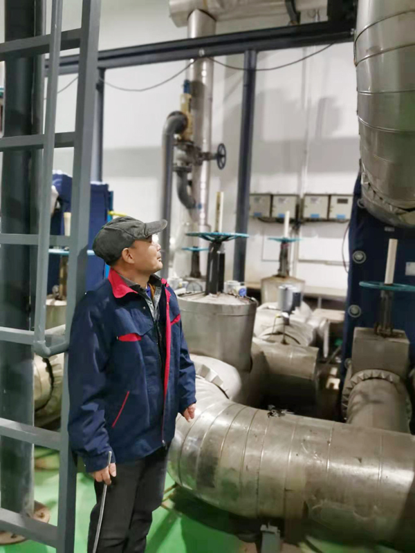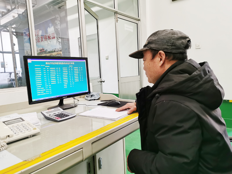 一排被大樹遮擋住的平房在公寓樓式的校園內難以找尋,剛入門,轟隆隆的聲音就灌入耳間,板式換熱器、循環泵、補水泵、水箱、計量表……有序排列的機器冰冷地矗立在那里,卻也不斷地為人們提供熱能和生計。這是學校換熱站,也是程秀起工作了三十多年的地方。