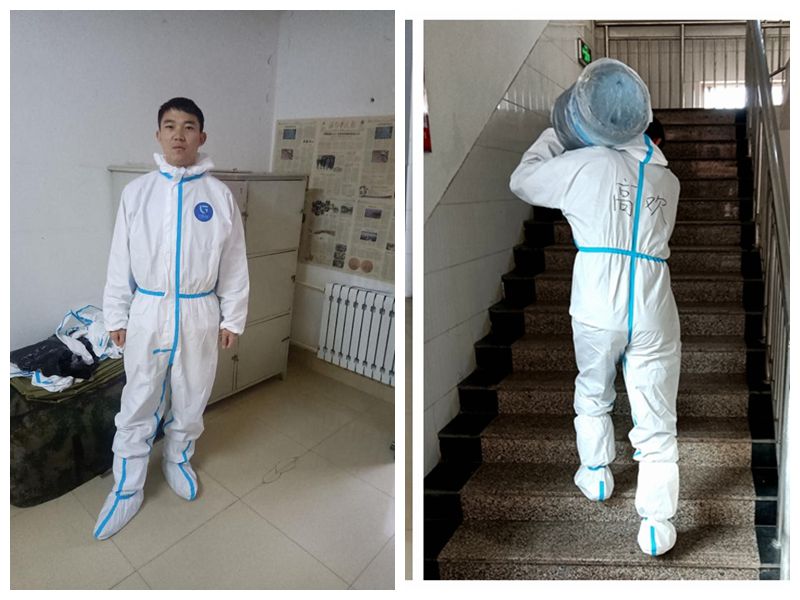 清晨,快速穿好防護服、戴好口罩和護目鏡,高歡一天的防疫工作從為居家健康監測人員逐個送早餐開始。一日三餐,他需要一份一份的從一樓取上,然后逐個樓層地送到每一個房間,把居家健康監測人員的垃圾收集起來放到醫用垃圾箱統一清運,同時,他還要負責所有居家健康監測人員的一日三檢,做好詳細的記錄,為他們的健康追蹤提供最基礎的數據資料。每天如此反復,一天下來,常常顧不上喝口水,更沒時間坐下來歇歇。盡管如此,他還是在繁重工作的同時牽掛著學生的心理健康,因為他深知枯燥的隔離生活會讓學生的情緒產生波動。因此,他借送飯、給學生補給生活用品、輔助醫護人員進行核檢和收垃圾的時間,給他們普及防疫小知識,緩解他們的焦躁情緒。