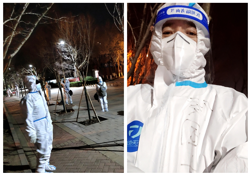 穿上防護服,搖身變成“大白”。進入公寓一層一層、一個一個地敲開學生宿舍門,兩個半小時的忙碌,將急需的防疫物資及時送到學生手中......事后他感慨,“當大白太不容易,穿著防護服像蒸了一次桑拿。”