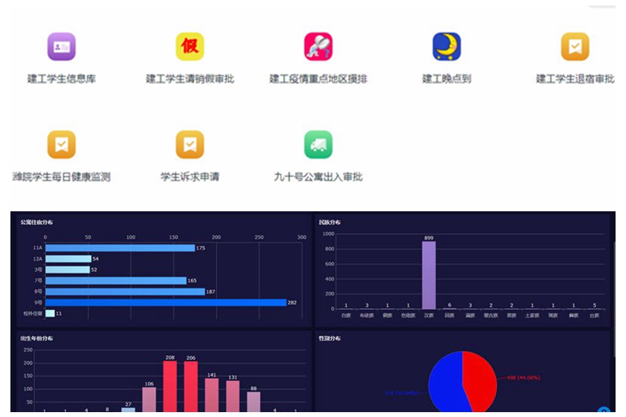 進入校園封閉管理期以來,數據統計是輔導員工作的主題。每日了解掌握全院927名學生的生活學習行蹤情況,匯總分析報送各種數據,如何能夠保證學生各項信息數據統計更科學、更高效、更準確?王子嵩老師一直在思考。他發揮專長,自告奮勇率先利用簡道云低代碼應用搭建平臺,經過不斷搜索和嘗試,完成了建工學院學生信息庫收集、疫情重點地區摸排、學生請銷假審批、晚點到、學生公寓報修等多個簡應用,為疫情期間學生信息收集和管理提供了較大便利。項目研究期間,他時常坐在電腦前,研究平臺,設置邏輯關系,解決系統bug,測試收集數據,有時候,他甚至要在電腦前連續端坐14個小時。“3月15日,夜里11:45,一天沒怎么吃東西,但我還是有一點小小的自豪和成就感。想著明天就要第一次測試系統了,我覺得為了一件有利于大家的事情而努力是一種幸福的感覺。”王子嵩老師如是說。