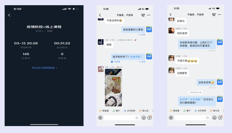 周穎老師是一名7歲孩子的母親,同時也是144名學生的知心姐姐。學校決定封校當夜,周穎毅然決然地舍小家,于3月11日晚迅速到崗,堅決參與到駐校管理工作中。她非常重視學生線上學習,每天都會關心學生們網課學習情況,對上課秩序做嚴格要求的同時也積極關注網課中遇到的問題;建立釘釘群“不拋棄、不放棄”,與集中居家健康檢測、因疫情無法返校的學生互動交流,時刻關注學生的線上學習情況,積極協助學生反饋線上課問題;為了讓家長了解學校政策和學生情況,她召開線上家長反饋會,“一對一”與144名學生家長在線聯系溝通,反饋學習進度,明確學習要求。幫助學業困難學生聯系任課教師,尤其關注集中隔離學生線上學習,積極解決學生遇到的問題和困難,真正當好學生線上學習同路人。