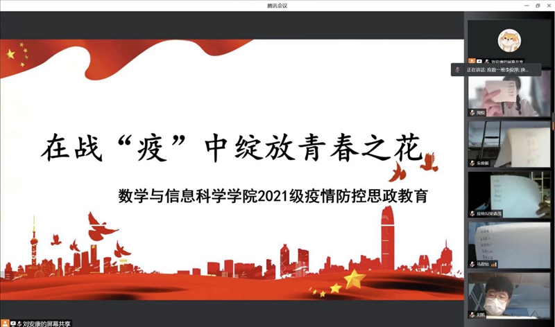 本網訊 為認真落實學校疫情防控相關要求,抓牢抓細學生疫情防控工作,堅定戰“疫”必勝的信心和決心,將抗疫精神轉化為育人力量,根據學校黨委部署,數學與信息科學學院精心安排,在全院組織開展了疫情防控思政課專題教育活動。
