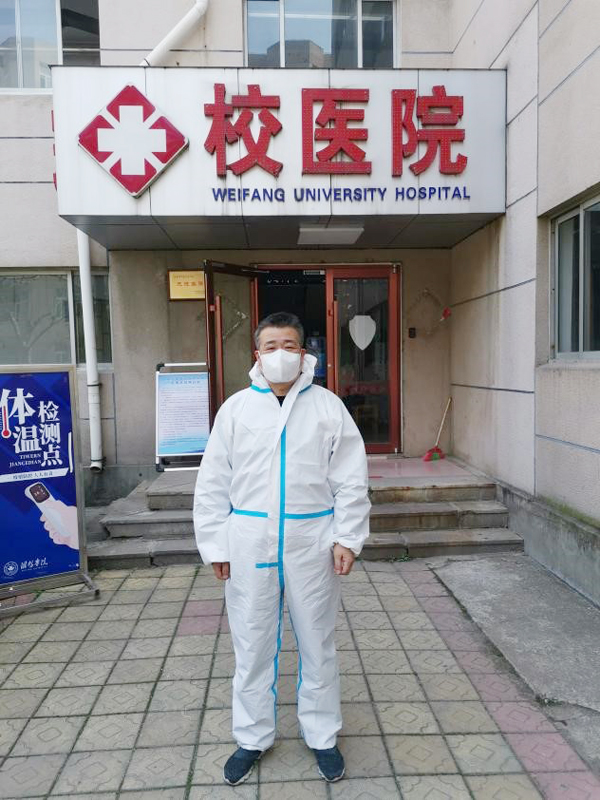 在疫情突發的這段時間里,常志隆主動請纓,丟下面臨高考的孩子和需要照顧的老人,舍小家為“大家”,勇奔戰“疫”前線,進駐校醫院,擔負著點對點接送發熱學生到濰坊市第二人民醫院就診的轉運任務。由于校醫院車輛緊張,他還將自己的車經過全面消殺之后,開上“戰場”。