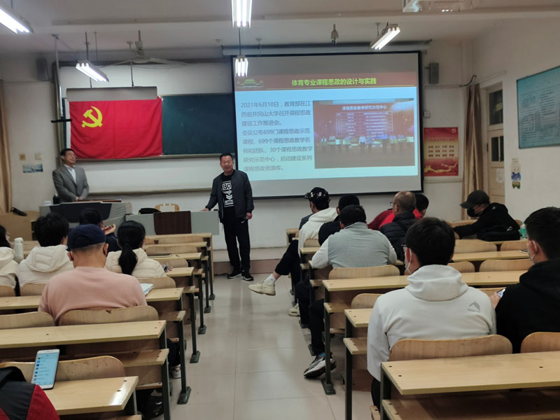 本網訊 為深入貫徹中共中央和學校關于高校課程思政建設的相關會議精神及文件要求,把思想政治教育貫穿人才培養體系,有效推進體育學院課程思政建設,5月10日,體育學院邀請首批國家級(線上線下混合式)一流本科課程、省級線上線下混合式一流課程、山東省思政金課負責人張子林教授作了題為“體育專業教學中課程思政的設計與實踐”的專題講座。體育學院院領導、各教研室主任及教師聽取了講座,講座由體育學院副院長管培國主持。