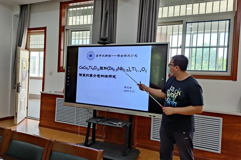會上,李沖、郝文濤、王璇三位博士教師依次作學術報告。李沖報告題目是《有機太陽能電池內聚合物非均勻構型誘導的電荷分離動力學》,通過塑料能否導電這個問題,作了關于有機半導體材料的導電性能的研究報告;郝文濤作了CaCu3 Ti4O12型和(In0.5Nb0.5) xTI1-xO2陶瓷的高介電物性研究的精彩報告;王璇作了利用同極化合成孔徑雷達數據進行整體海浪參數的驗證與校準的專業報告。三位老師的學術報告準備充分、內容豐富、學術性強,討論環節認真、激烈,學術氛圍濃厚,整個學術沙龍受到師生的熱烈歡迎。