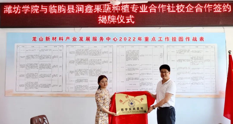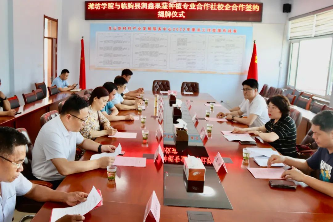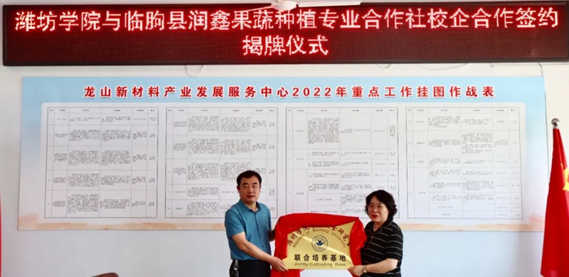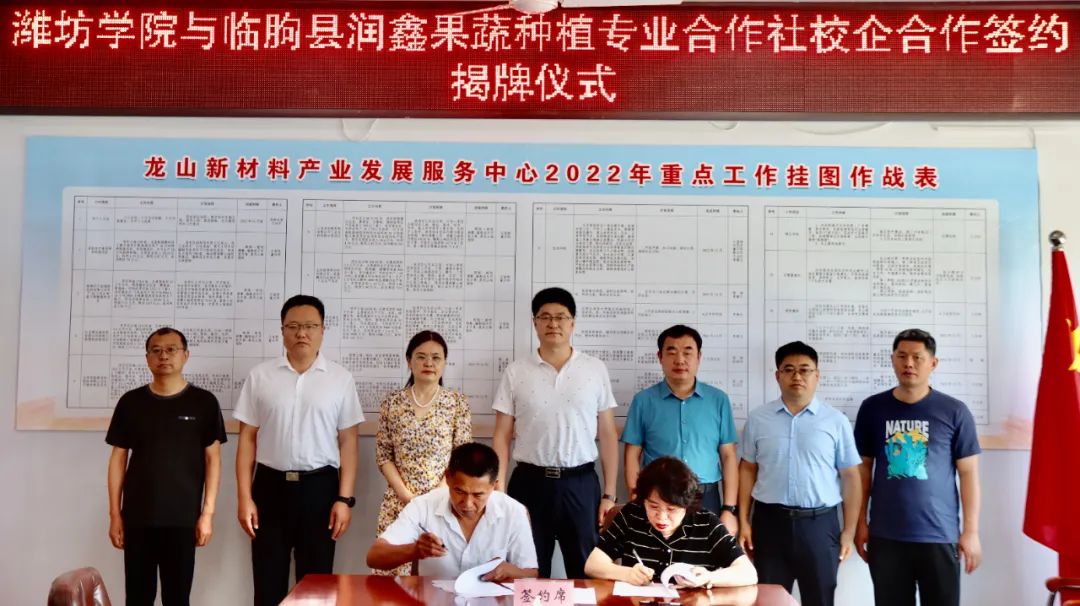 簽約儀式拉開了臨朐縣潤鑫果蔬種植專業合作社與濰坊學院校企合作的序幕,龍山街道政府表示將全力為雙方合作提供支持和保障,積極營造良好的發展環境,及時幫助解決遇到的困難和問題。希望雙方以此次簽約為契機,加強交流,在更廣領域、更深層次開展合作,力爭結出更多碩果。