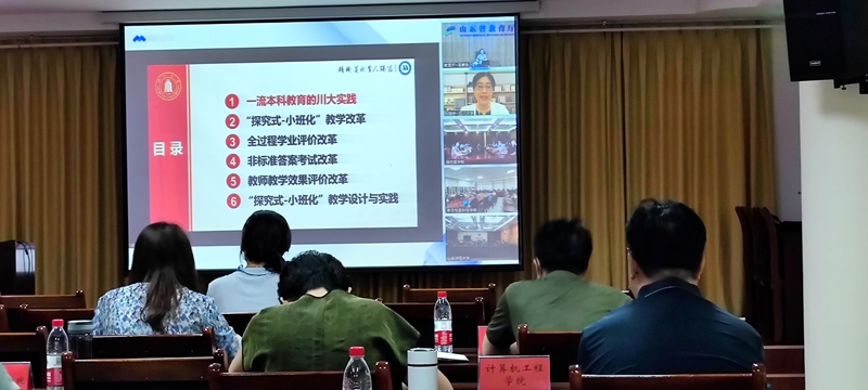 會議邀請四川大學副教授劉曉宇作課堂教學改革專題報告,她介紹了四川大學課堂教學改革歷程、經驗與模式,詳細分享了“探究式-小班化”教學改革理念、做法與條件保障。報告內容詳實,從頂層設計到實施過程,從理論依據到實踐操作,全面、系統、深刻。