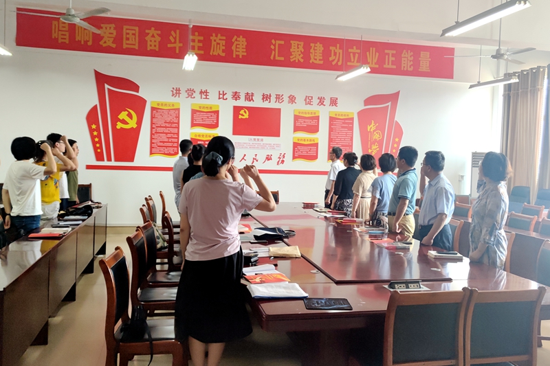 重溫入黨誓詞,永葆初心。全體黨員同志在教師黨支部書記張淑芝同志帶領下,一起重溫了入黨誓詞。 鏗鏘有力的宣誓聲在會議室內回蕩,同時激蕩在每位黨員心中,這是一次深刻的黨性教育和靈魂洗禮,這是初心使命的再宣示,是接續奮斗的再出發。