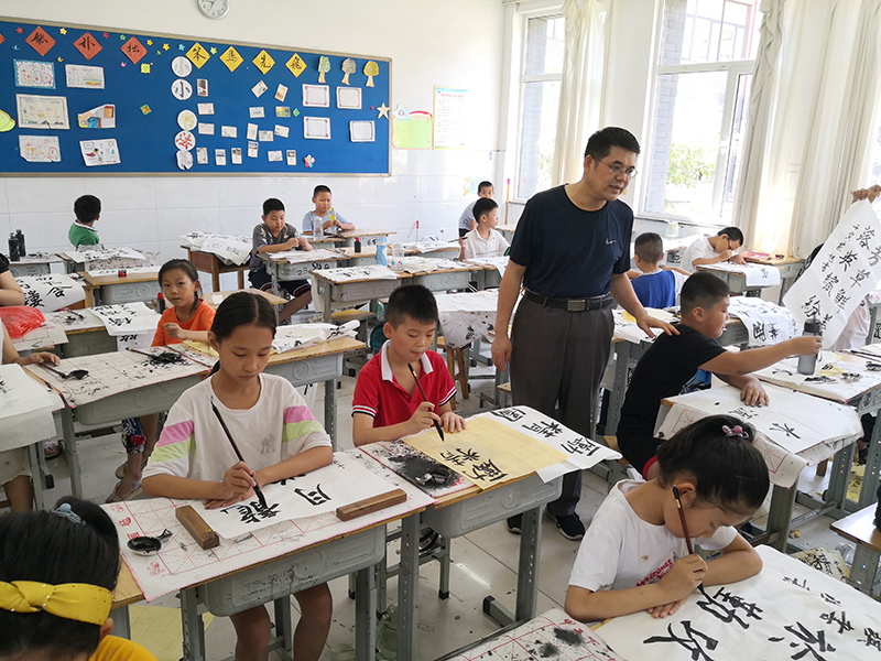 前期,根據疫情防控形勢,我校教師采取線上教學的方式,為學生們開設書法和聲樂課程,在兩所學校設立教學實踐基地。本次暑假期間,在臨朐縣教體局的協調下,我校美術學院和音樂學院負責同志及專業骨干教師放棄假期休息的時間,為暑期托管的孩子們進行了兩期、每期各10天的藝術指導活動。開設書法、繪畫、聲樂、舞蹈、中考美術音樂輔導課程,共計授課720學時,同時為學生提供全部學習用品和器材,組織專業教師創作藝術作品,服務校園文化建設。活動以點及面, 輻射帶動周邊10 所以上的 中小學校。
