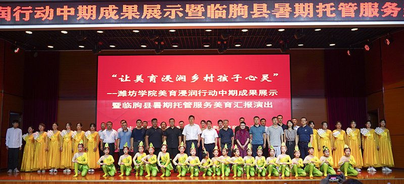 本網訊 8月19日上午,美育浸潤童心,藝術點亮未來——濰坊學院、臨朐縣冶源小學、辛寨初級中學美育浸潤行動階段成果匯報會,在臨朐縣中小學生綜合實踐學校舉辦。我校黨委委員、宣傳部部長單振濤,教務處、音樂學院、美術學院負責同志以及濰坊市教科院、臨朐縣教體局相關負責同志出席活動。