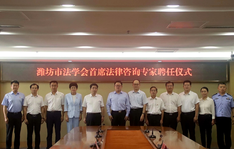 本網訊 8月25日,濰坊市法學會舉行聘任儀式,我校政法學院院長苗金春教授受聘為濰坊市法學會首席法律咨詢專家。