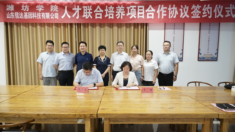 山東信得基因集團副總裁兼信達基因有限公司董事長馬廣斌從企業發展的輝煌歷程、核心技術和明星產品、產學研合作成果以及企業文化等方面向與會人員進行了介紹。他表示,此次與濰坊學院簽約是公司發展中的一件大事更是一件幸事,期待雙方合作能盡快結出豐碩果實,并以此為契機,以點帶面,促成更大的、全方位的合作。