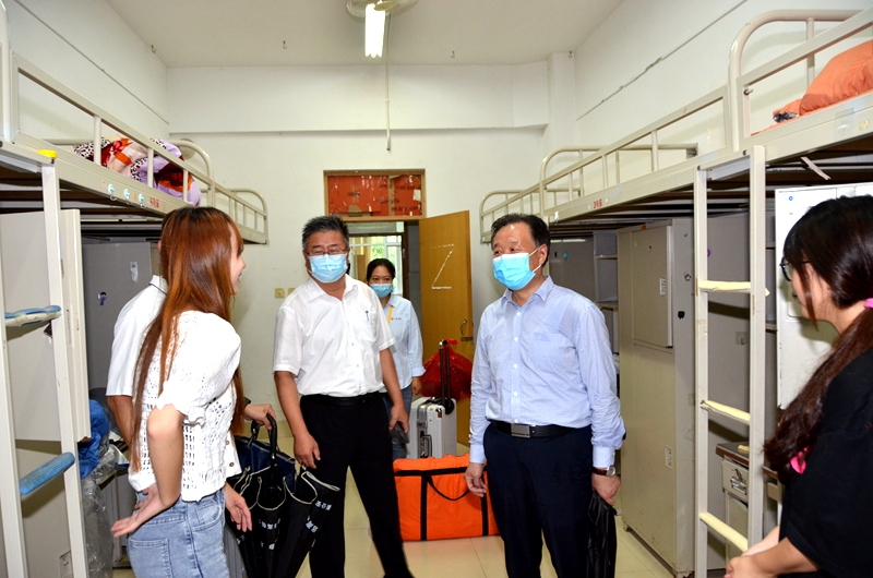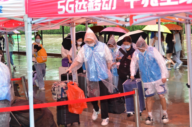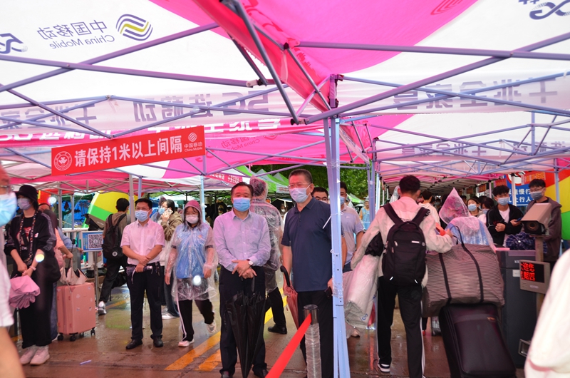 本網訊 白露凝珠月更明,萬物靜候好個秋。9月15日,2022級省內新生滿懷希冀步入校園,開啟嶄新的大學生活。受臺風影響,迎新當天下起了大雨。學校黨委書記李東在相關部門負責同志的陪同下,冒雨到主校區和弘德校區迎新現場,詳細了解迎新工作情況。