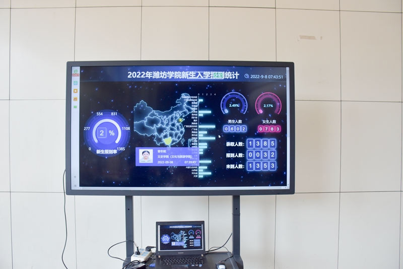 為做好新生報到接待工作,學校在主校區、安順校區和弘德校區設立迎新報到服務點,為新生辦理報到注冊、領取校園卡、安排住宿等事宜。省內新生報到當天天氣惡劣,學校啟動迎新工作應急預案,新生來校直接入住宿舍,其他報到手續隨后辦理。由于家長等陪同人員及車輛不能進校,為做好迎新工作,學校積極組織動員師生為新生報到開展志愿服務。工會、人事處組織成立了教工迎新志愿者服務隊,為新生提供接站服務。團委統籌全校迎新青年志愿服務工作,組建校院兩級迎新青年志愿服務隊,各學院團總支積極推薦學生黨員、優秀學生骨干,上崗志愿者達1800余人次,幫助新生辦理報到手續、協助新生搬運行李,引導新生乘坐擺渡車,在新生需要幫助的地方及時出現,服務時長累計1.04萬小時。在學校辦公樓大廳內的顯示屏上,學校的迎新系統正實時顯示新生報到情況,包括報到人數、占總人數比例、地域、民族、學院等信息,每30秒刷新一次。