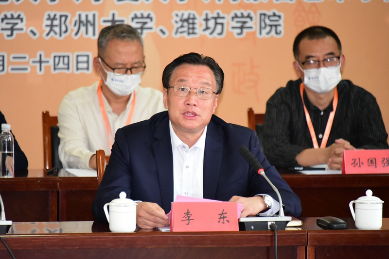 趙復興代表山東省教育廳對聯盟成立表示祝賀,表示將全力支持聯盟發展建設,希望濰坊學院加強與聯盟兄弟高校交流合作,強化科學研究與創新,努力將聯盟打造成為經濟文化建設特色靚麗品牌,為推動黃河流域生態保護和高質量發展作出應有貢獻。