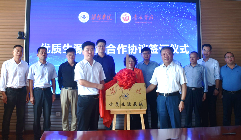 在簽約儀式上,李連成全面介紹了學校概況,并重點對種子學院的專業設置、師資隊伍建設、科研教學成果、學生考研等方面做了詳細介紹。安丘市青云學府班子成員和教研室主任絕大多數是我校畢業的學生,對濰坊學院發展高度關注,熱烈歡迎學校在青云學府建設優質生源基地,將積極推薦考生報考濰坊學院。