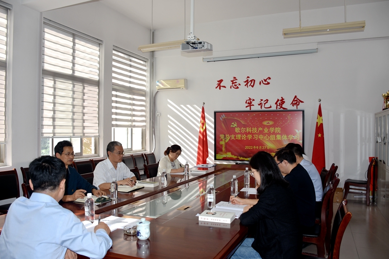 本網訊 9月27日上午,歌爾科技產業學院黨總支理論學習中心組在致遠樓6216會議室進行集體學習,歌爾科技產業學院黨總支書記、院長李健主持會議。機械與自動化學院(濰柴產業學院)黨總支副書記馮道俊、綜合辦副主任王辰羽列席旁聽中心組學習。