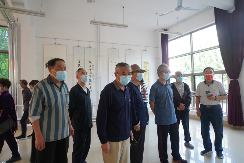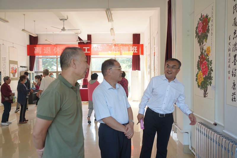 開展儀式前,馬茜華與前來參加活動的市委老干局二級調研員李志民進行了工作交流,并參觀了濰大花園活動場所。離退休教職工黨委各支部的代表、參展作品的作者參加了本次活動。
