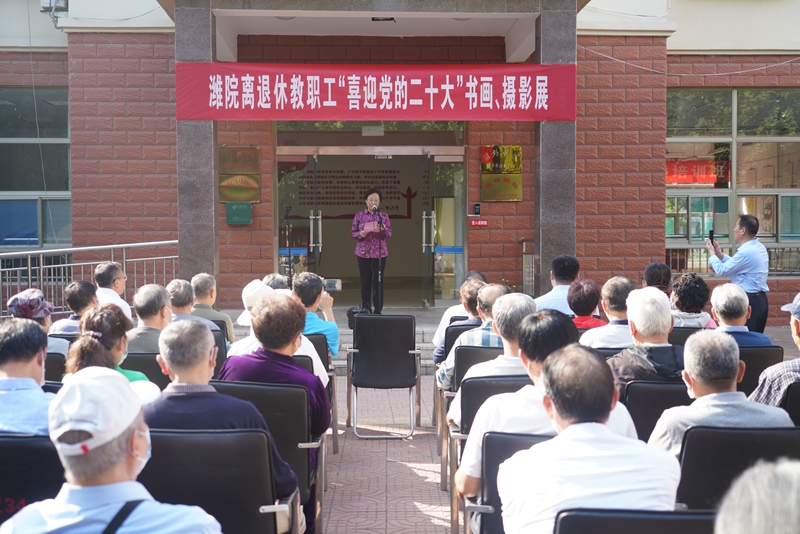 本網訊 9月30日上午,我校離退休教職工“喜迎黨的二十大”書畫、攝影展開展儀式在濰大花園活動中心舉行。學校副校長馬茜華出席開展儀式并致辭。