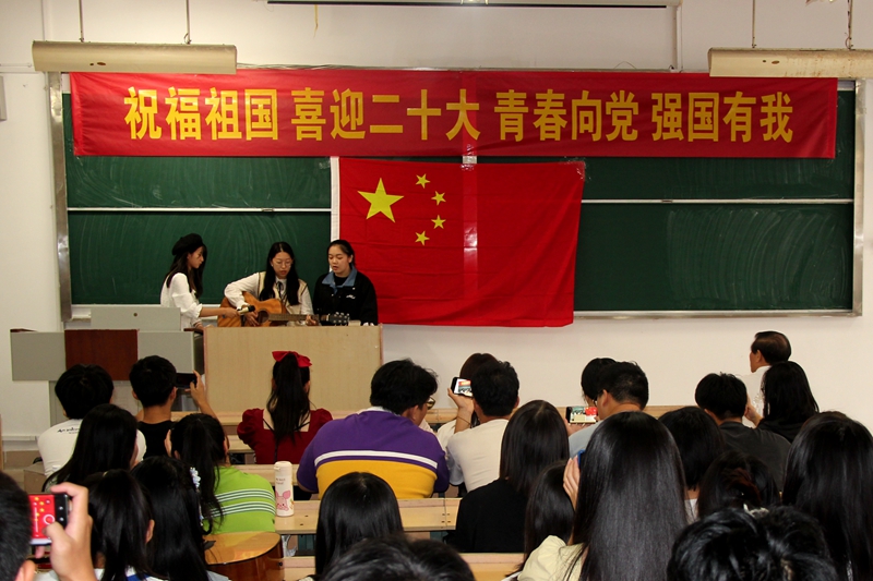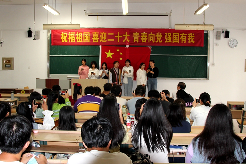 活動在布依族同學黃永其的民族舞《探窗》中開場,同學們用自己的歌舞表達了對祖國母親的祝福,展現了青年學子強國有我的追求與自信。輔導員王國棟老師為過生日的韋春盈和張曇同學送上了親手制作的生日禮物,勉勵同學們勤學苦讀、團結友愛,立志成才。