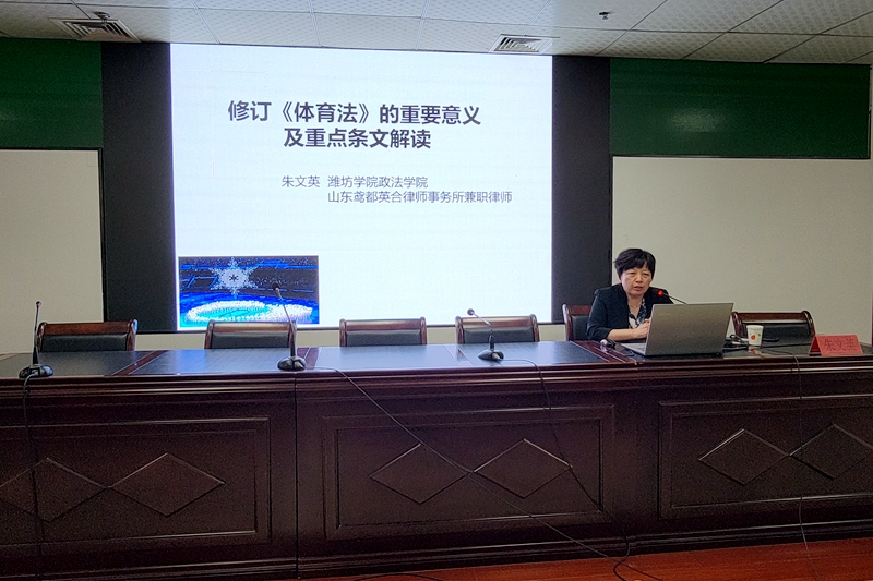 本網訊 近日,濰坊市市直機關 2022 年第 18 期“黨員進黨校”培訓班在濰坊市體育運動學校舉辦。為切實提升培訓實效,受濰坊市體育局邀請,政法學院朱文英教授為參加培訓的市直體育系統學員就新修訂的《體育法》作專題學術報告。