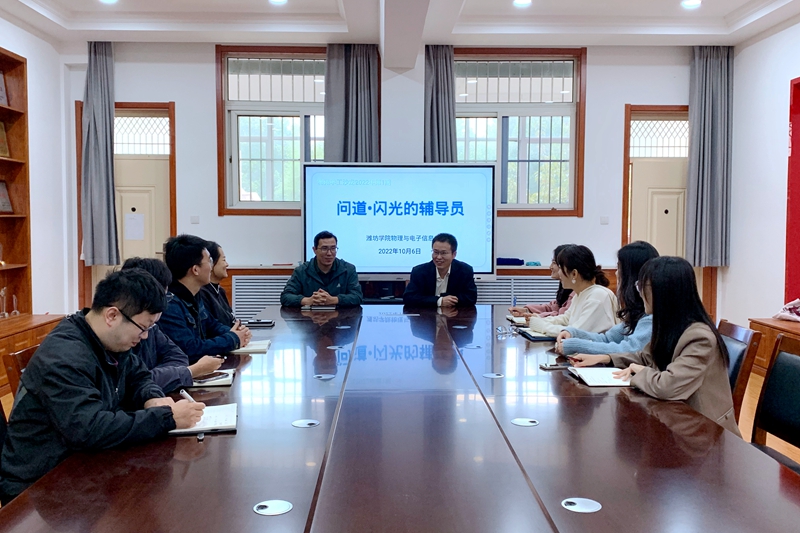 本網訊 10月6日上午,物理與電子信息學院“問道·閃光的輔導員”物苑學工沙龍在明正樓5205室舉行。本次沙龍特邀校學生工作處大學生事務管理中心主任王振國前來分享交流,學院全體輔導員參加。