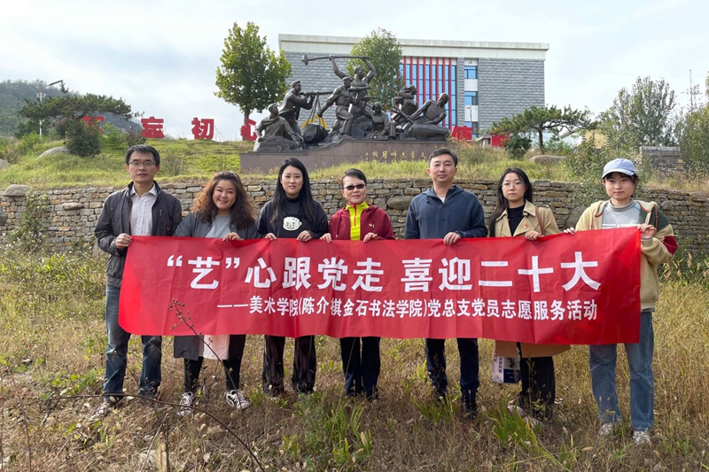 本網訊 10月7日,美術學院(陳介祺金石書法學院)黨總支赴臨朐縣辛寨初級中學、濰坊市愛國主義教育基地瑞莊村史館、淌水崖水庫紀念館等地進行合作學習考察暨“‘藝’心跟黨走,喜迎二十大”主題黨日活動。