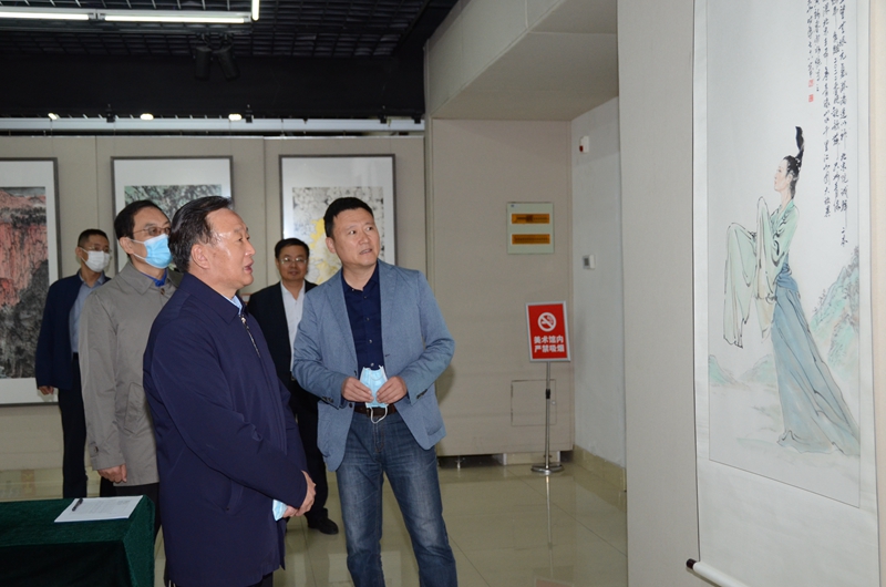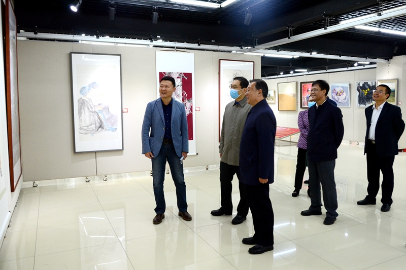 本網訊 10月14日,學校黨委書記李東,黨委委員、副校長王旭升到校美術館參觀“喜迎二十大·禮贊新時代·奮進新征程”主題書畫作品展。