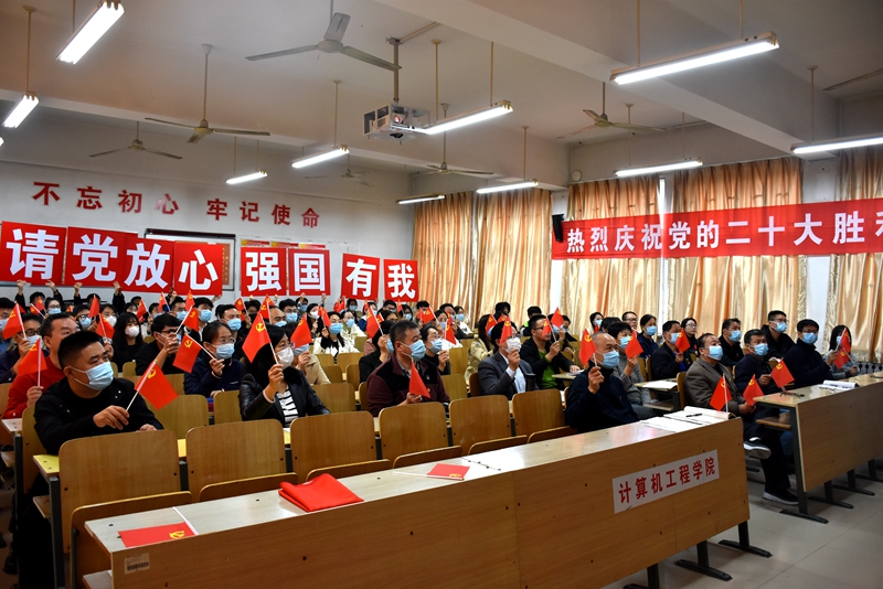 本網訊 10月16日,舉世矚目的中國共產黨第二十次全國代表大會在北京隆重開幕,習近平總書記代表十九屆中央委員會向大會作報告。計算機工程學院組織全體師生黨員在7234教室集中觀看開幕會直播,部分師生自發在教室、辦公室、學生宿舍等地通過電視、網絡、廣播等多種方式收聽收看,共同學習領會大會精神。