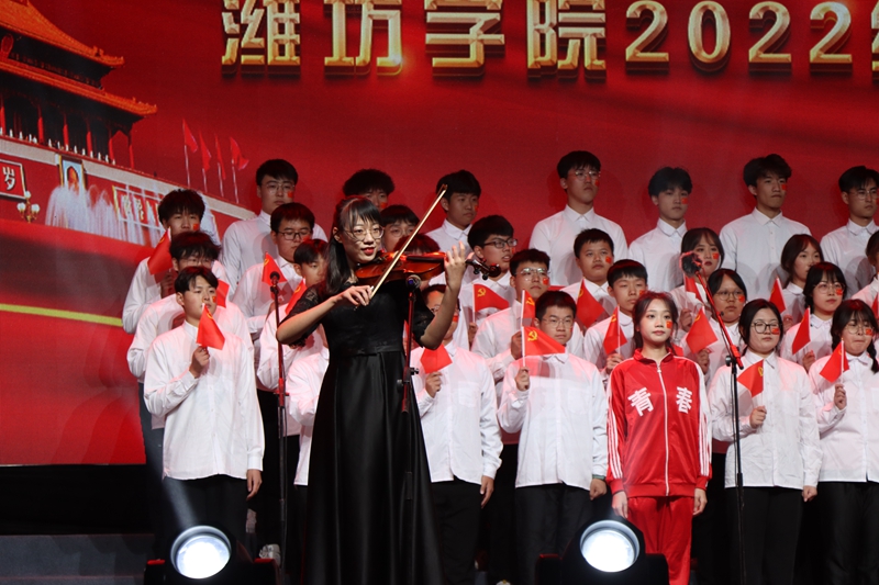 比賽在歌爾科技產業學院演唱的《我愛你中國》中拉開帷幕,一句句“我愛你中國”,直擊在場每一位觀眾的心靈。在這場視聽盛宴里,各二級學院的風采與特色都被展現得淋漓盡致,不僅有嘹亮的歌聲,也有舞蹈、武術、器樂演奏等多種形式創意融合其中。一首《映山紅》憶曾經,革命意志遍布山野;一首《萬疆》觀燈火,勾勒山河無恙;一首《我們都是追夢人》迎時代,讓夢想飛揚。觀眾們伴隨著音樂學院學子的歌舞,在《復興的力量》的旋律中,回顧百年征程。鏗鏘有力的歌聲回蕩在學校上空,濰院學子們以歌詠志,唱響了愛國主旋律,以精彩的青春樂章獻禮黨的二十大,展現了青年學子青春昂揚的精神風貌和愛黨愛國的堅定信念。