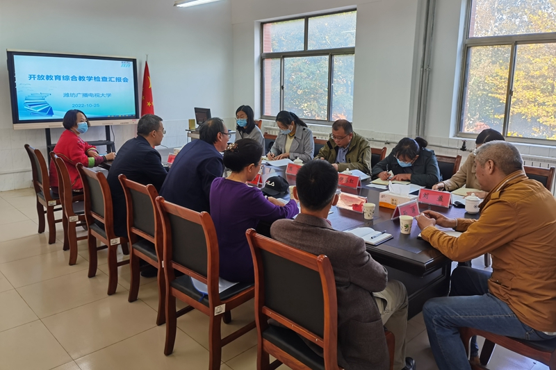 在情況匯報會上,繼續教育學院主要負責同志簡要介紹了我校的基本情況,以及繼續教育學院(遠程教育中心)現階段的組織架構和主要業務,并從開放教育綜合教學檢查自檢情況和濰坊廣播電視大學2022年開放教育教學檢查結果通報兩個方面作了匯報。