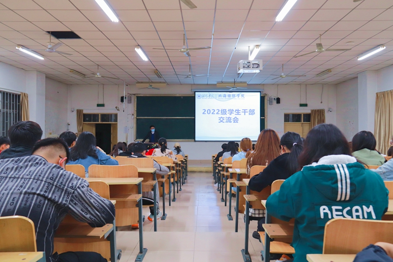 本網訊 為進一步做好學生干部培養工作,充分發揮學生干部的模范帶頭作用,推動學院學生管理工作更上新臺階,10月26日,北海國際學院召開2022級學生干部交流會。學院副院長王波出席會議,2022級學生輔導員朱珊珊、王世浩,2022級全體學生干部參加會議。
