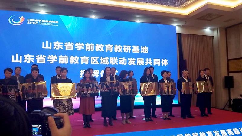 本網訊 10月26至28日,山東省學前教育學會成立大會暨第二屆學前教育發展高端論壇在濟南舉行。會上,公布了山東省學前教育教研基地33個,其中高等學校教研基地7個,我校名列其中。山東省教育廳一級巡視員劉欣堂、山東省學前教育學會會長黃琦、山東女子學院院長李光紅等領導為教研基地授牌。我校教師教育學院院長魏晨明教授代表學校領牌。